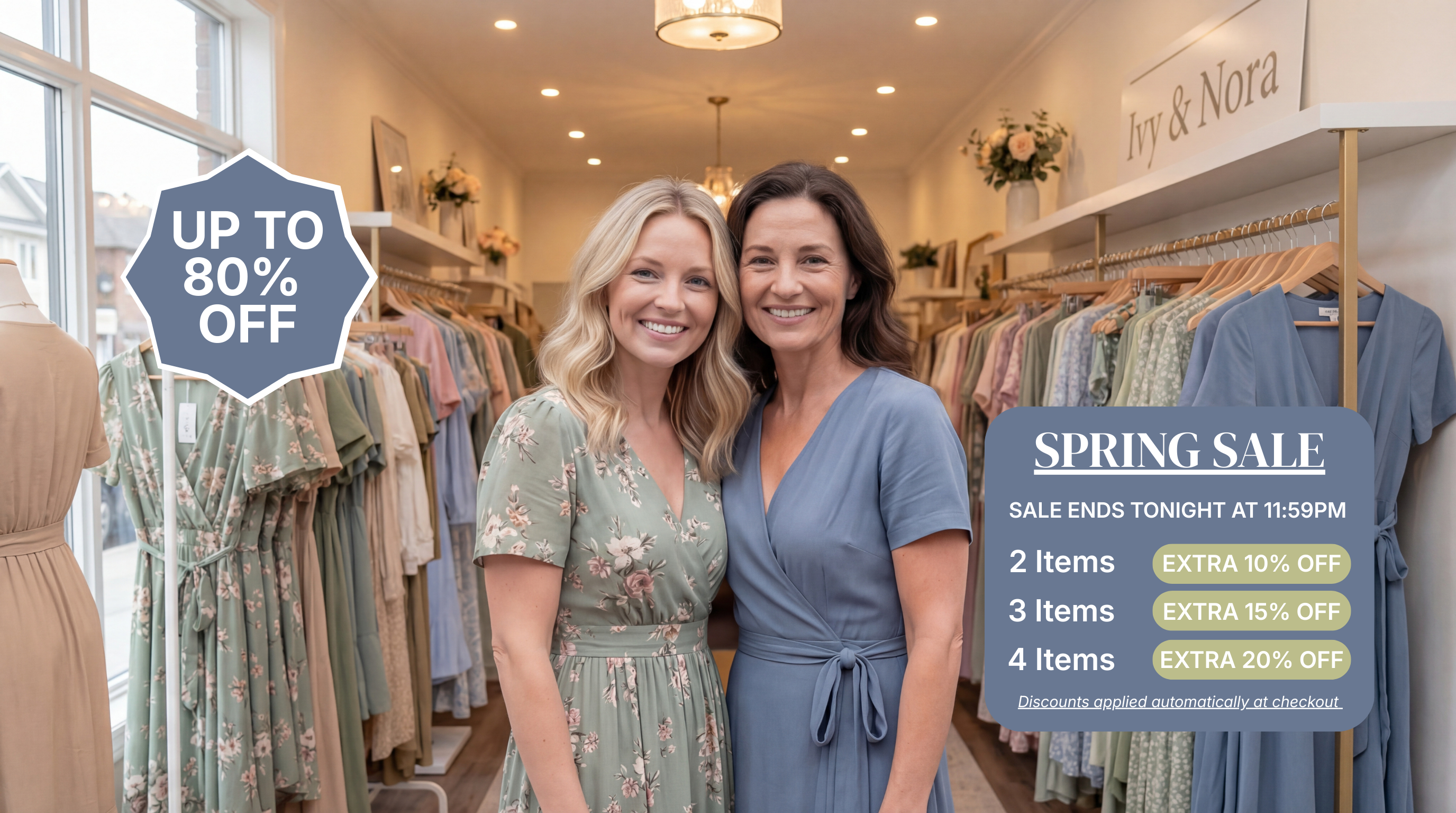 Discounts apply automatically at checkout. Mix and match any items from our Spring Sale collections.